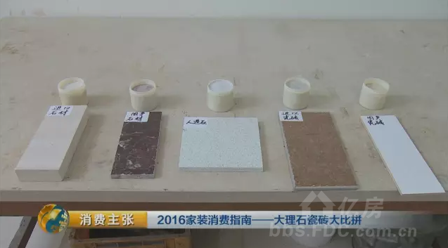 我們分別準備了國產(chǎn)和進口大理石,國產(chǎn)瓷磚和進口瓷磚的5份樣品,分別用來測試消費者比較關(guān)注的輻射性、耐磨程度和吸水性。
