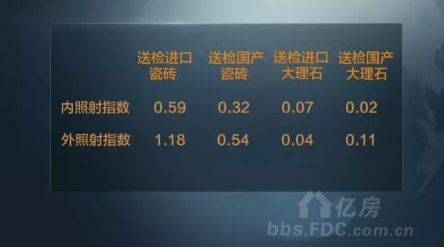 檢驗員:送檢進口瓷磚的檢測結(jié)果是內(nèi)照射指數(shù)0.59,外照射指數(shù)1.18,送檢國產(chǎn)瓷磚的檢測結(jié)果是內(nèi)照射指數(shù)0.32,外照射指數(shù)0.54。