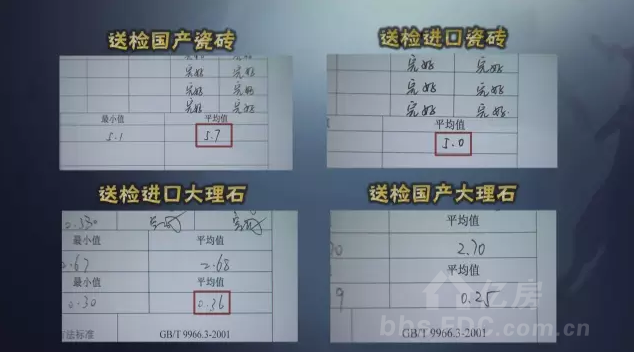 檢測結(jié)果顯示,送檢國產(chǎn)瓷磚的平均吸水率是5.7%,送檢進口瓷磚是5%,送檢進口大理石的平均吸水率是0.36%,送檢國產(chǎn)大理石是0.25%。也就是說,在防水性能上,送檢的進口瓷磚優(yōu)于國產(chǎn)瓷磚,而送檢的國產(chǎn)大理石的防水性要強于進口大理石。